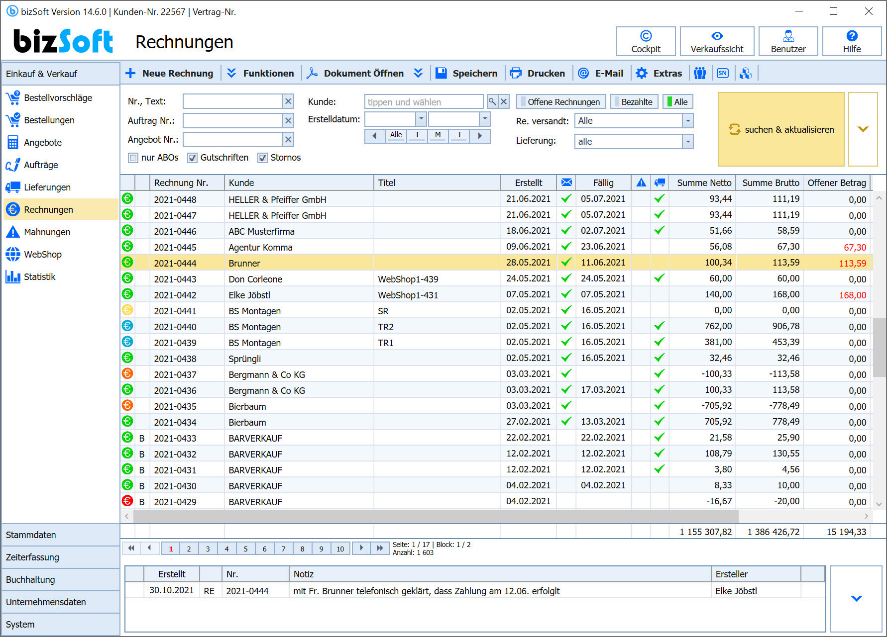 bizSoft überwacht Ihre Rechnungen und erzeugt automatisch Mahnschreiben